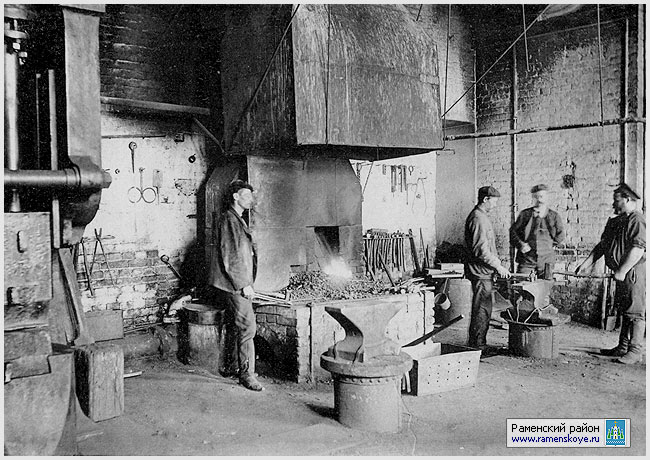 Строительство прядильной фабрики в с.Раменское началось в 1828 году на берегу Борисоглебского озера. Этому предшествовали довольно затруднительные обстоятельства. Дело в том, что после смерти С.В.Голицына имение перешло его жене Анне Александровне и сыну. Но так как имущественные дела из-за расточительной жизни Голицына были расстроены, то А.А.Голицыной был назначен опекун для поправки дел. Этим опекуном стал брат мужа В.В.Голицын. Именно он и начал постройку фабрики на часть капитала своей жены и княгини А.А.Голицыной. Прядильную фабрику было решено построить около озера. Но крестьяне неохотно шли на фабрику, условия работы были ужасные, заработки малы, что приводило к постоянным недовольствам. Фабрика оказалась на грани закрытия. Пока в 1843 году ее не сдали в аренду московским купцам Малютиным Павлу, Николаю и Михаилу. После смерти братьев арендатором становится Павел Семенович Малютин. Именно с его приходом начинается расцвет фабричного производства, а с ним и развитие села Раменское. Павел Семенович Малютин был человеком «слова и чести» в течение 23 лет он один или в компании основал 8 промышленных предприятия. Модернизируя фабрику, он не забывал и про человеческий фактор. Поэтому старался окружать себя умными, знающими людьми, радеющими за производство и рабочих. Именно таким и стал молодой инженер-технолог Федор Михайлович Дмитриев. Придя на фабрику в 1851 году Ф.М. Дмитриев в 1856 году становится директором. Сначала все производство было сосредоточено в одном 3-х этажном каменном здании и двух деревянных, но дальнейшее расширение фабрики Малютину было не выгодно, а продать фабрику Голицыны не соглашались. И только в 1866 году, фабрика была продана с прилегающими землями наследникам Малютина (Малютин умер в 1860 г.). С этого момента производство стало расширяться и оснащаться новыми английскими станками. Ф.М.Дмитриеву было поручено увеличить производство. Для этого он едет за границу для знакомства с аналогичными фабриками. В 1868 г. был построен первый пятиэтажный кирпичный корпус ткацкой фабрики, где размещалось 80 механических ткацких станков, устроен водопровод для пожарной охраны. В это же время был выстроен газовый завод. В специальном здании помещался гигантский газовый аппарат. Газ подавался в новый корпус по подземным чугунным трубам. Вырабатывался он сначала из бересты и смолы, а с 1871 года из каменного угля. В прядильном и ткацком отделениях отопления не было, так как машины давали достаточно тепла. В остальных цехах и раздевалках было 19-22 градусов. Цеха с большими окнами хорошо вентилировались. Старые корпуса перестраивались, появлялись новые цеха: трепальный, чесальный, прядильный, механические мастерские. Основное строительство и расширение фабрики приходится на 1873-1893 гг. Увеличивается количество ткацких станков, образуются новые цеха. Последний 5-ти этажный бетонный корпус американской конструкции или как его называли «бетонка» был построен в 1910 году. В 1899 г. электрическое освещение было не только в цехах, но и в больнице, школах, домах.